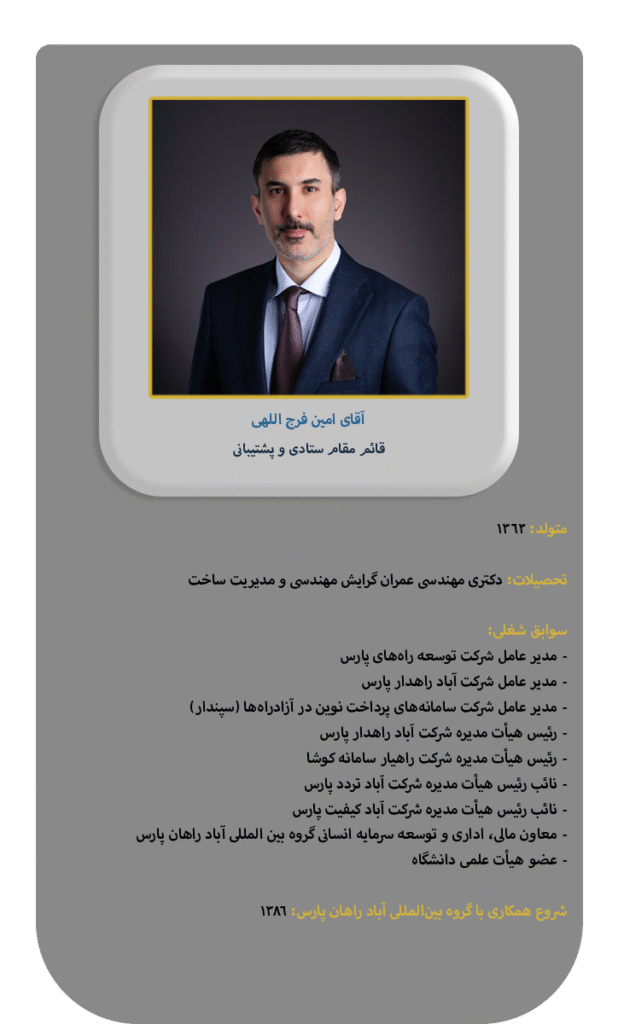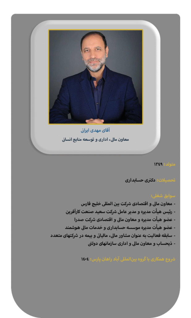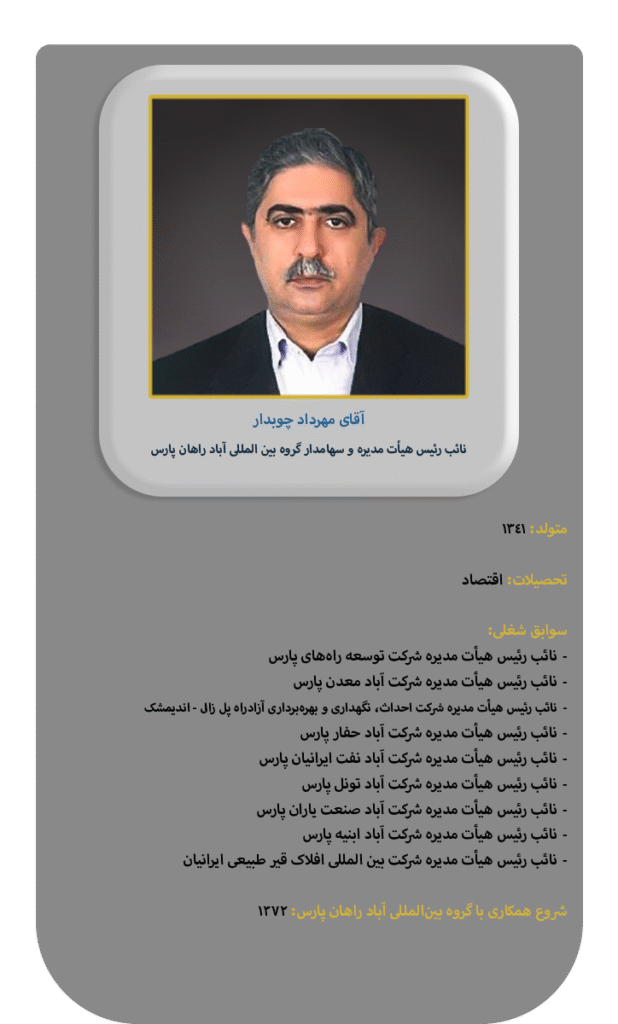 نایب رئیس هیئت مدیره: آقای مهرداد چوبدار