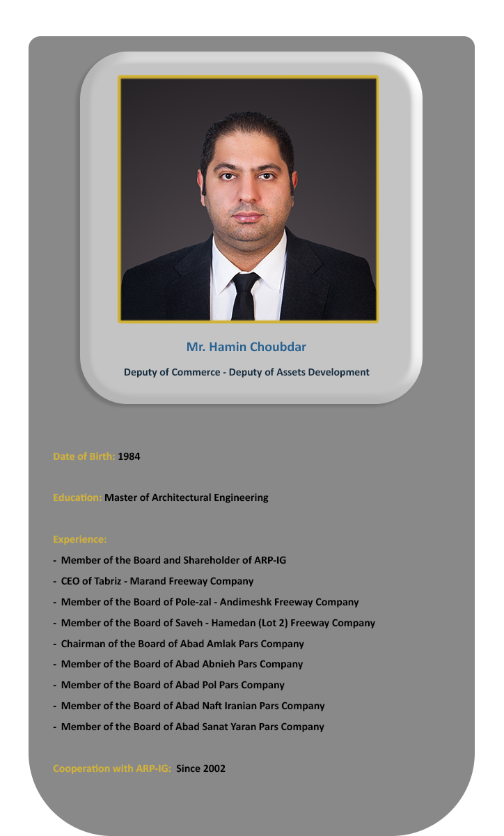 Chairman of the Board: Mr. Ghobad Choubdar